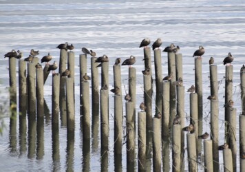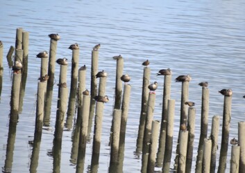 2月末から3月になると、今度は同じ木曽川のコンクリート杭にはマガモしか見かけません。
