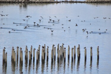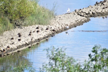 私の予想では、ここまで来たコガモたちはしばらく過ごした後、それぞれの家族に分かれて、毎年過ごしている中小河川に移動しているのではないかと思われます。