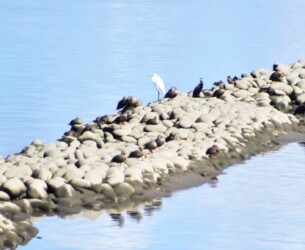 なぜか毎年同じ様子を見かけるので、海を越えてやってくるカモ類とは違うものの、やはり越冬場所は川らしいのです。