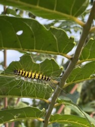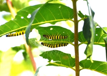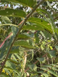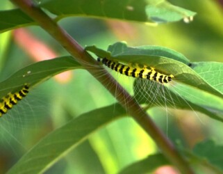 そこを通り過ぎようとしたら、その葉の裏に黄色っぽいケムシが沢山取りついているのを見かけました。