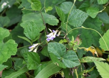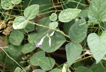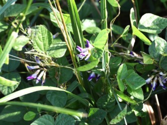 今年になって、近くのクリ林の下でも同じ青色の花を咲かせている、ヤブマメを見かけました。