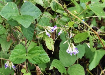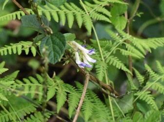 そんなマメ科の植物をいつも見かけていたものの、2年ほど前に海津市南濃町早瀬の雑木林の下で、マメ科だと思われる青色の花を見かけました。