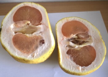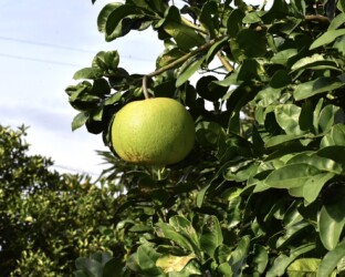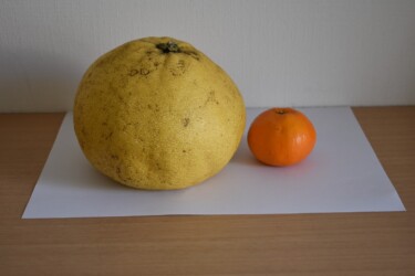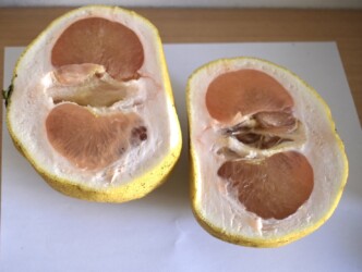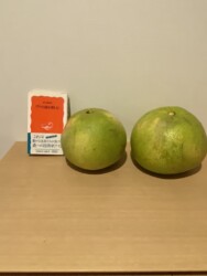 中果皮が厚くて、食べる内果皮の部分は余りなく、色合いはグレープフルーツ様であまり甘くはありませんでした。