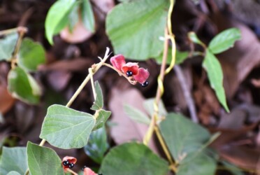赤橙色をした豆の莢が印象的でした。