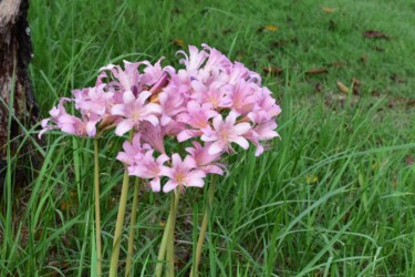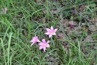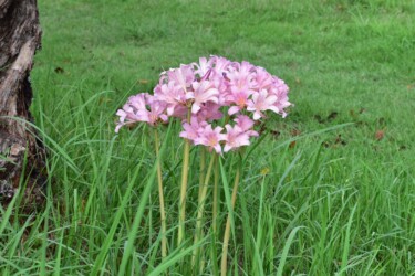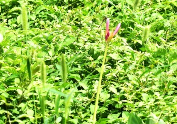 その境内の叢にピンクの6弁のハナビラを持ったユリに見えるような花が咲いていました。