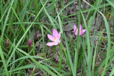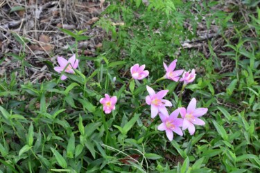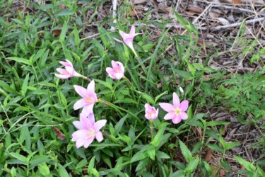 ウィキペディアには「ヒガンバナ科、タマスダレ属 サフランモドキ種。花を観賞するために栽培され、日本では暖地で逸出帰化している地域もある。メキシコ、グアテマラが原産地である。しかし現在ではアメリカ合衆国南部からコスタリカ、アンチル諸島、及び南アメリカのそれぞれに孤立した場所で見られるようになっている。南アメリカでは栽培状態か、或いはそこから逸出した姿でのみ見られる。日本では広く栽培されてきたが、暖地では逸出して野生化している地域もある。長崎県天草地方では水田のあぜ道に群生し、ヒガンバナのような美観を呈するという。~中略~ 日本では普通は6–10月が開花期である。花茎は鱗茎1つにつき1個生じ、長さは30センチメートル内外で先端に単独に花をつける。花の基部には膜質の苞があり、花柄の基部を取り巻いている。花柄は苞より短い。」と記されています。
