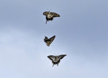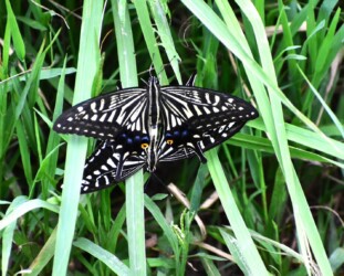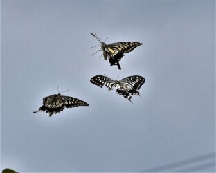 これほど多くのナミアゲハが飛んでいるので、交尾態の姿を頻繁に見かけて良さそうなのですが、なかなかそうした場面には出くわしていないのです。
