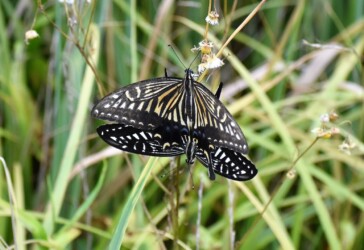 ところが今年の9月19日に木曽川東岸の岸辺に近い叢で、ナミアゲハの交尾態を見かけました。