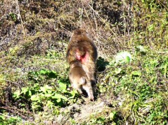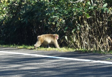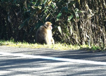 その後、街道を宮城県側に下って秋保の馬場辺りの道路を走っていくと、ニホンザルが横断しているのを見かけました。