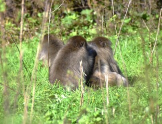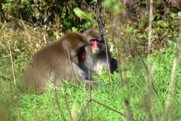 何頭ものサルが、叢の草の葉を食べているのを見て、ニホンザルはカキや、木の実などを食べるものだと思い込んでいたので、何か驚いてしまったのでした。