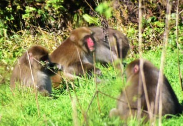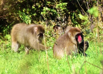 二口峠を越えて秋保大滝の手前の叢で、ニホンザルの群れを見かけた!
