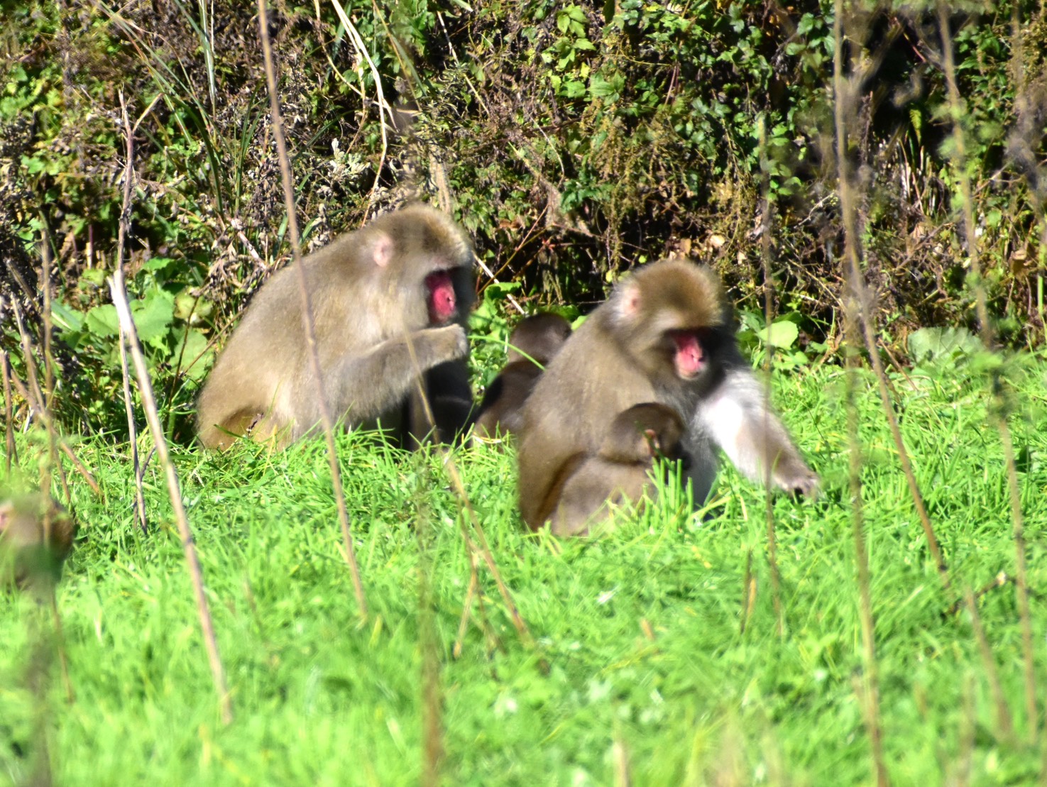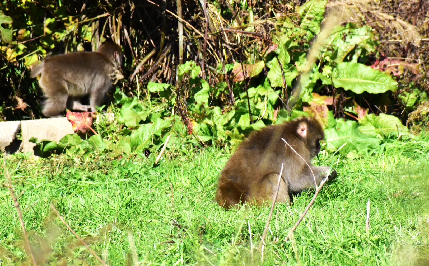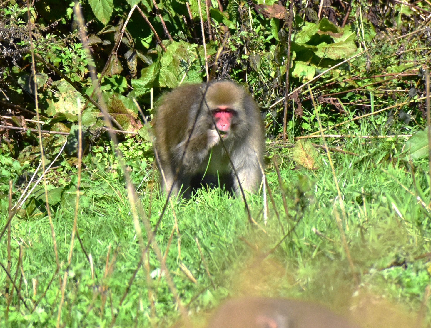 二口峠を越えて秋保大滝の手前の叢で、ニホンザルの群れを見かけた!