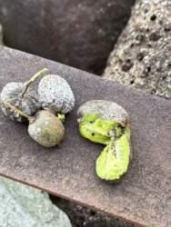 そのサルナシですが、見かけた時は季節の終わりで、実の周りも色合いもくすんでいたのです。