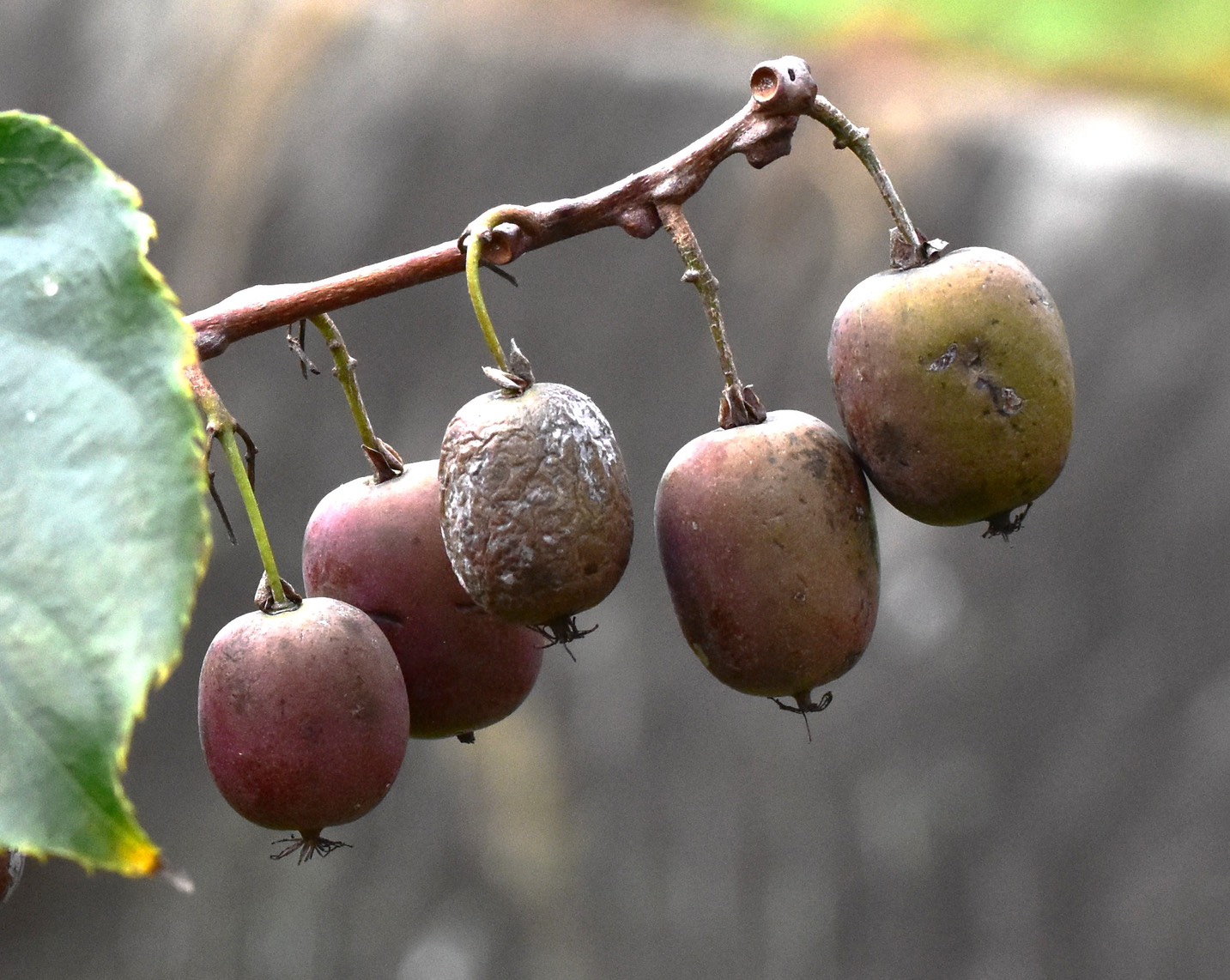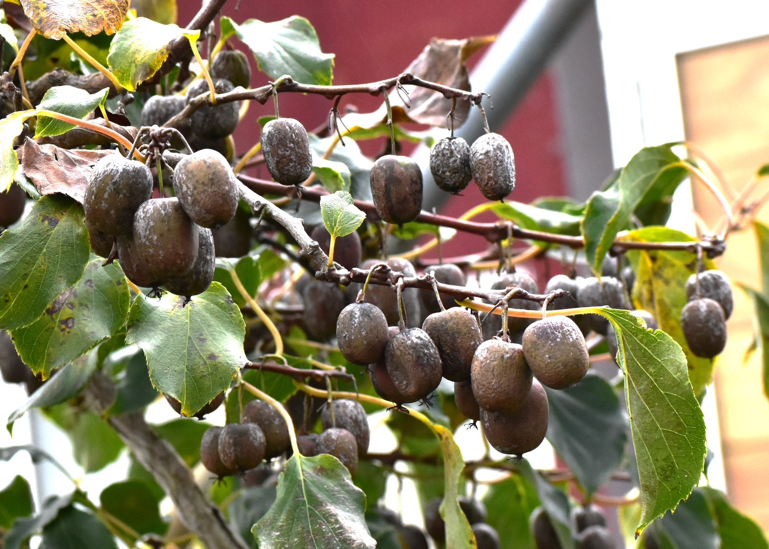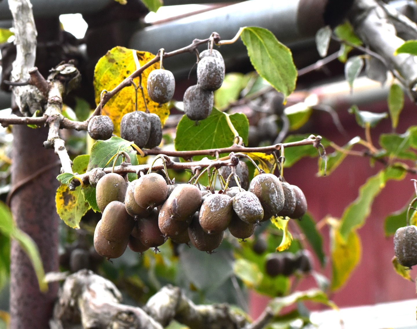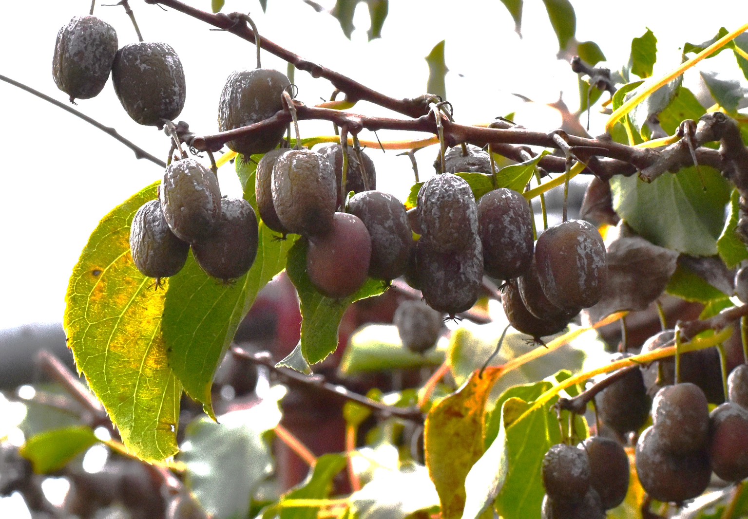 そのサルナシですが、見かけた時は季節の終わりで、実の周りも色合いもくすんでいたのです。