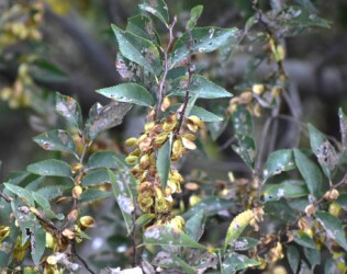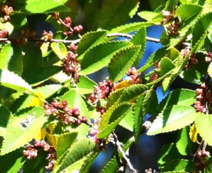 最初にアキニレを見かけた時に、沢山の目立たない花らしいものがついていました。