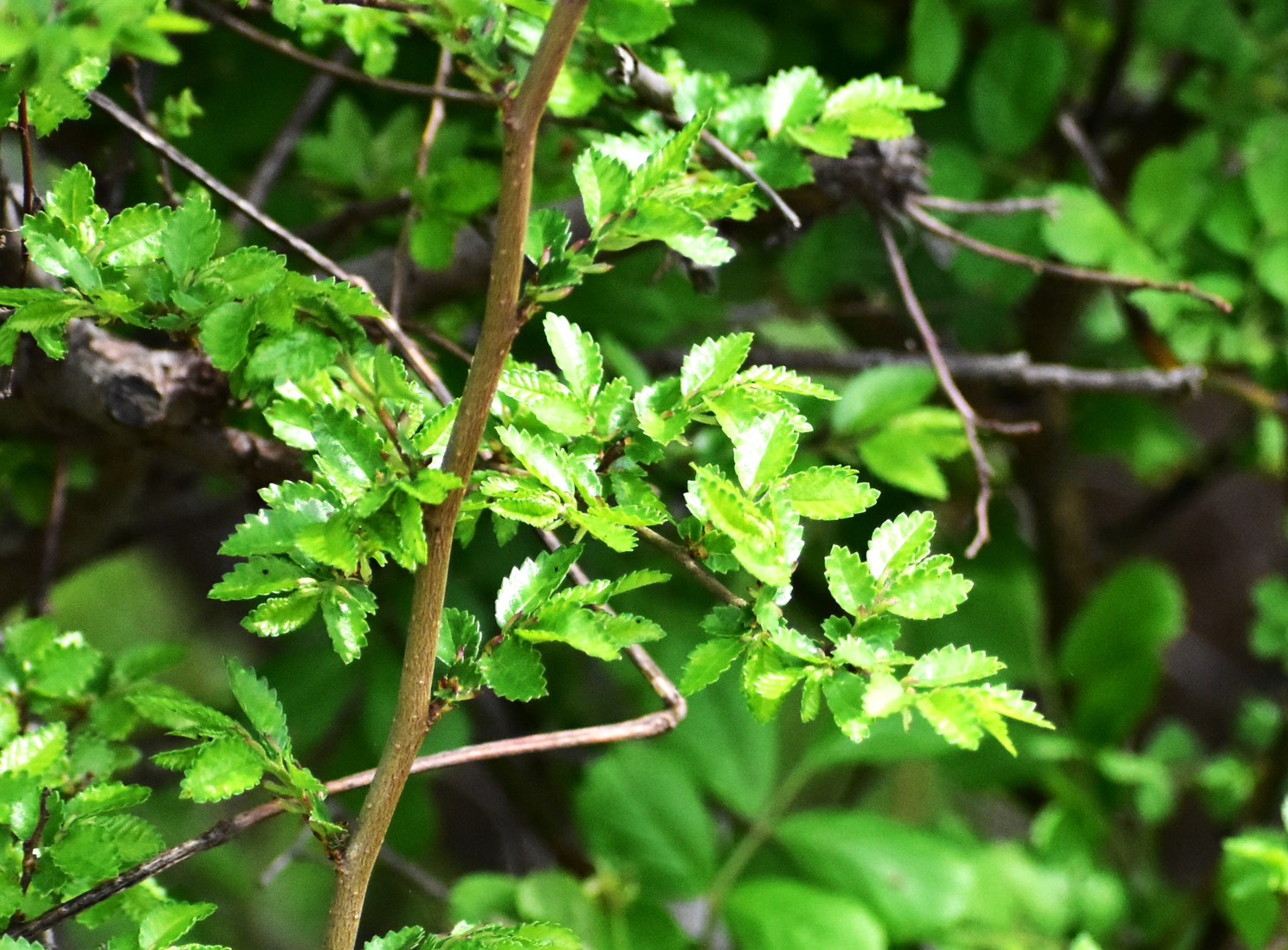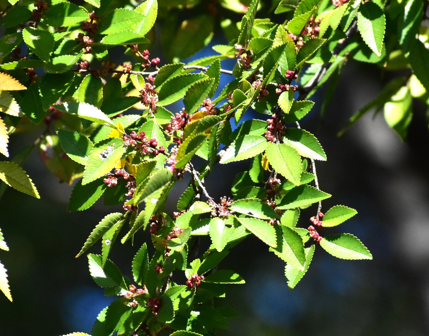 撮り終わってから園内を歩いているうちに、ケヤキの葉に似た小さな葉を出している木を見かけました。