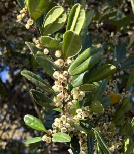 風が強い日で、ジョウビタキなどの鳥には会えなかったものの、土手下に沢山の実をつけた木がありました。