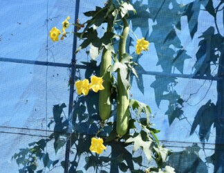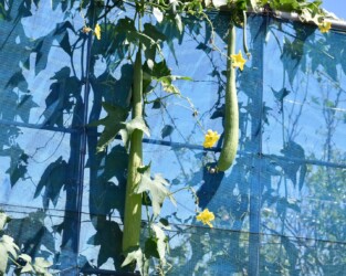 黄色い花が咲き、実ができて大きく育ってくると、そこからヘチマが何本もだらりとぶら下がっていたことを想い出します。