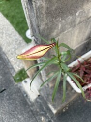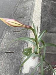 このユリだと思われる花が、自宅の駐車場脇のプランターに12月末から1月20日にかけて、ツボミをつけ始め、だんだんと膨らんできているのです。