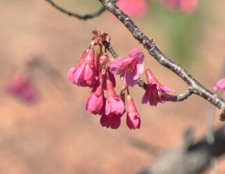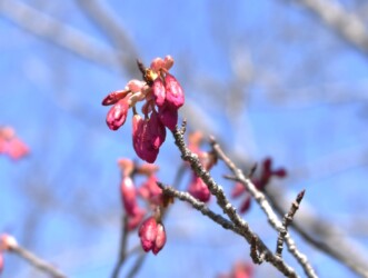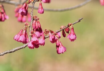 カンヒザクラは下向きに蕾をぶら下げていて、花が開いていても大きく開くことがないので、サクラの花のイメージからは外れているように感じています。