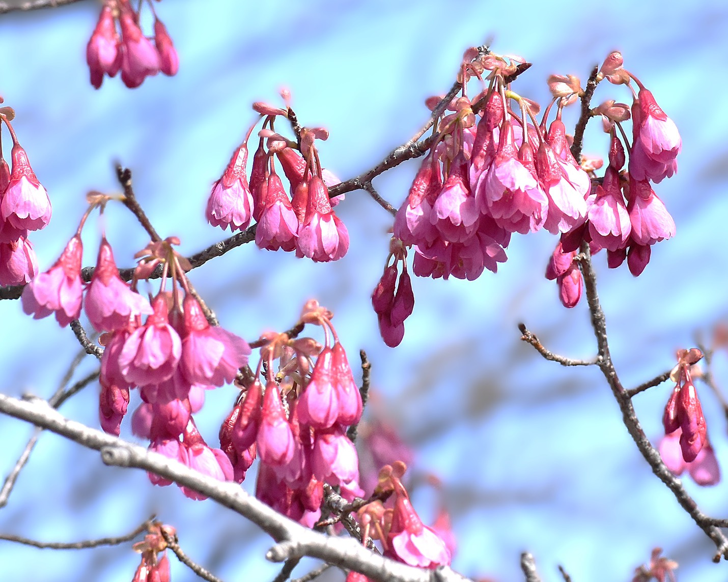 カンヒザクラは下向きに蕾をぶら下げていて、花が開いていても大きく開くことがないので、サクラの花のイメージからは外れているように感じています。