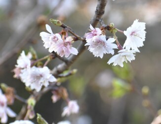 早咲きの小さい白い八重咲きのコブクザクラを初めて見かけた!