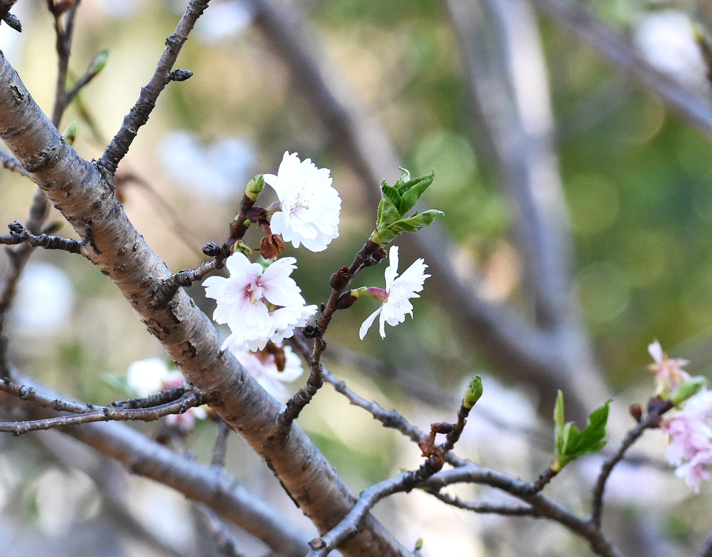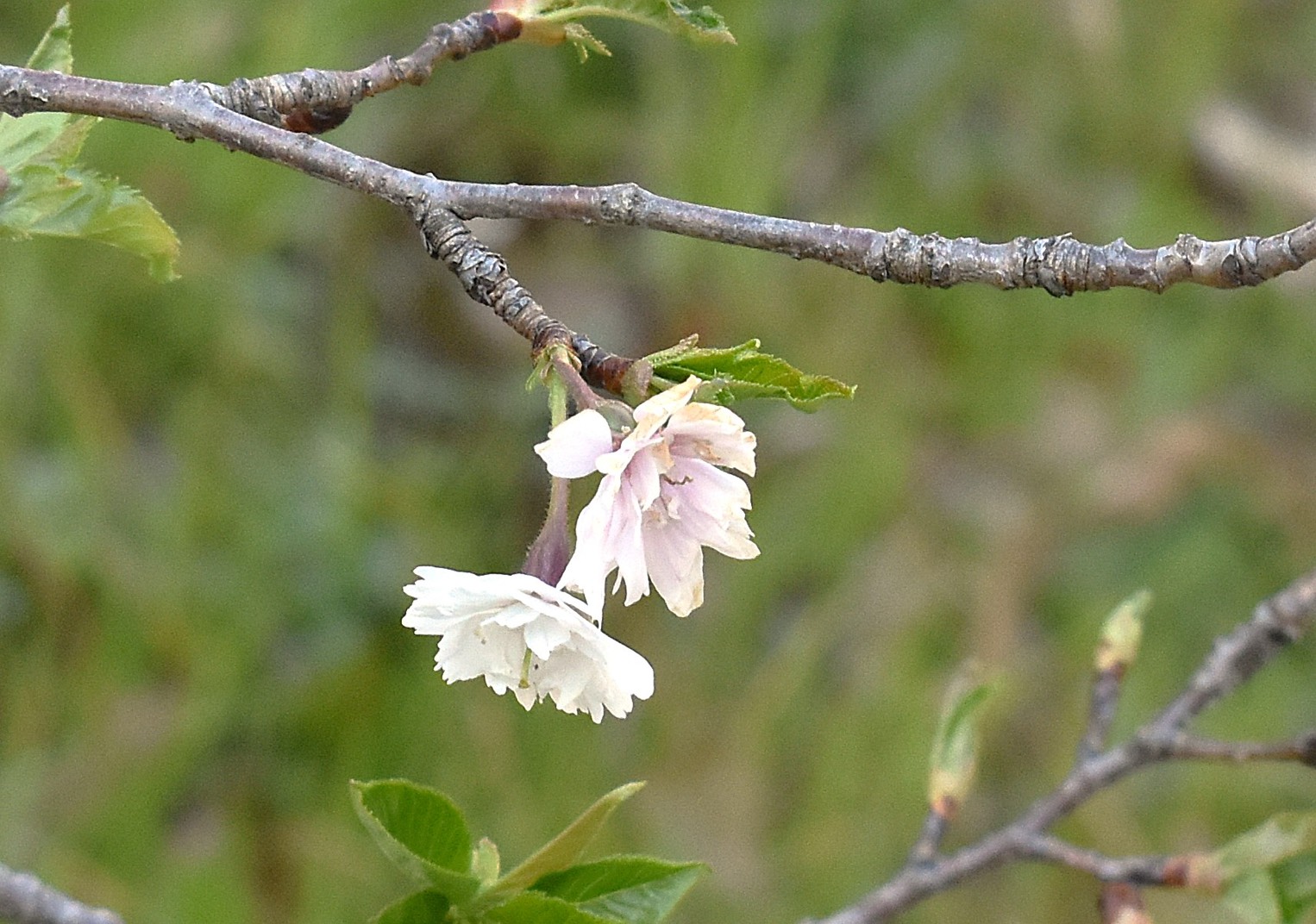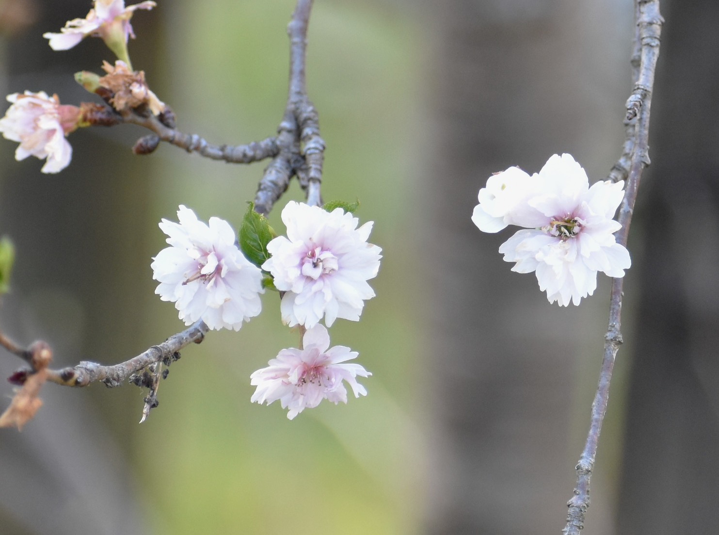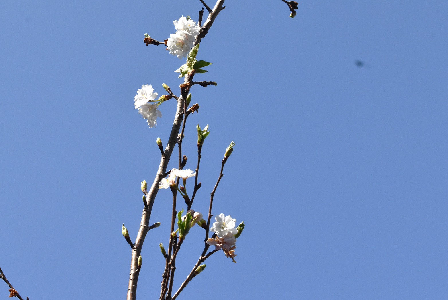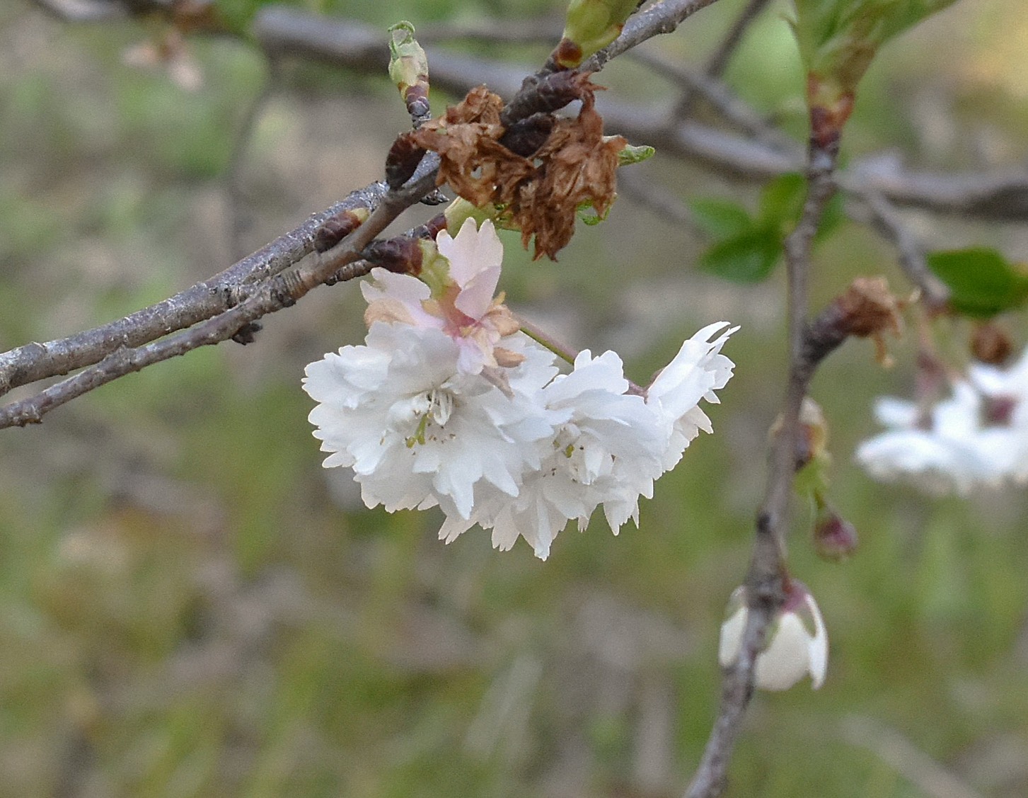 早咲きの小さい白い八重咲きのコブクザクラを初めて見かけた!
