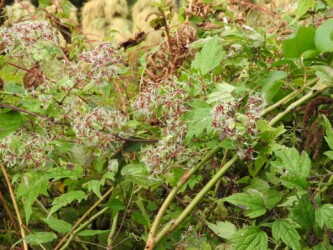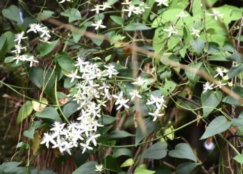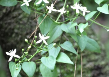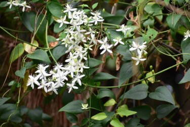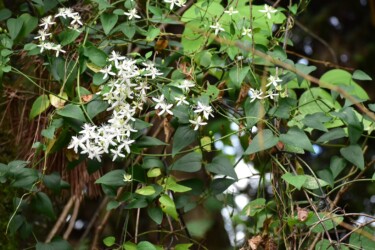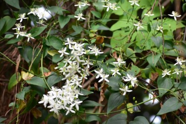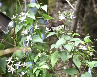 白い花がたくさんつくツル性植物で、他の植物に絡まっているのを見かけたものです。