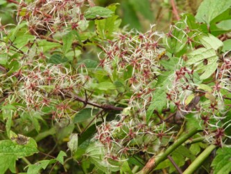 また「日本の野草」(林弥栄編 山と溪谷社)には「木質のつる性植物。葉は3~7枚の小葉からなる羽状複葉。小葉は卵形だが、ときに2~3の切れ込みがある。葉のわきに、径2~3㌢の白色の花を多数つける。痩果は倒卵形で、宿存する花柱が長い羽毛状になる。和名は仙人草だが、意味は不明。有毒。花期は8~8月。生育地は野原。分布は日本全土。」となっています。